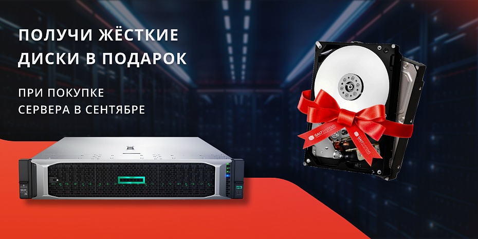 В течение всего сентября при покупке любого б/у сервера на сумму от 125 000р вы получите в подарок жёсткий диск на выбор: